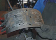 linings & rivets are removed using impact tools to reduce damage to brake shoes and rivet anchor points (No drilling of rivets when removing old lining).